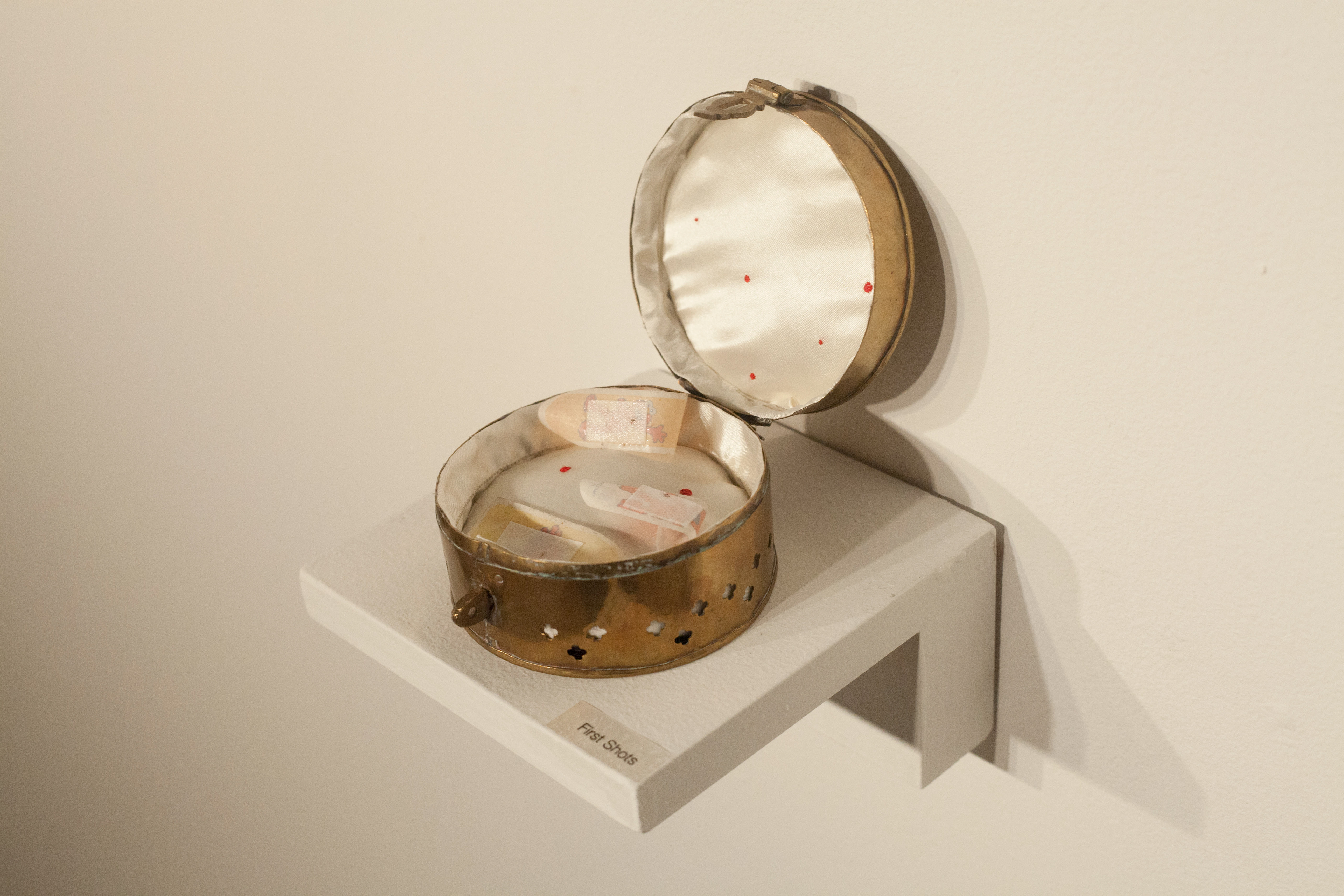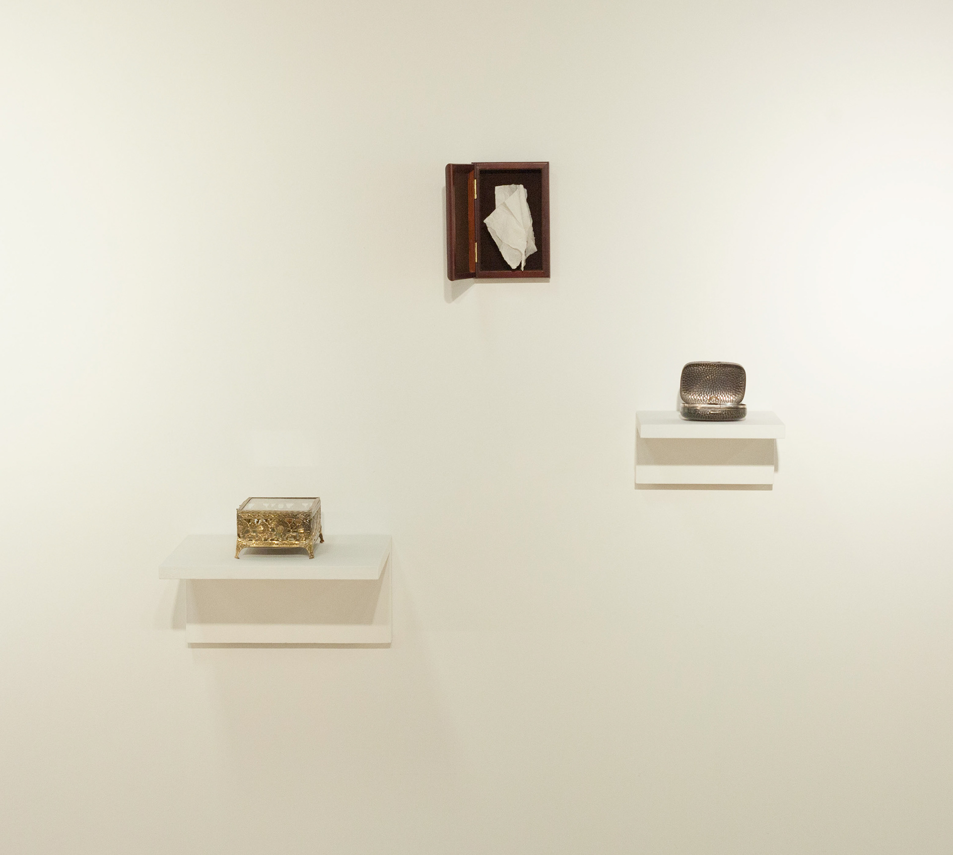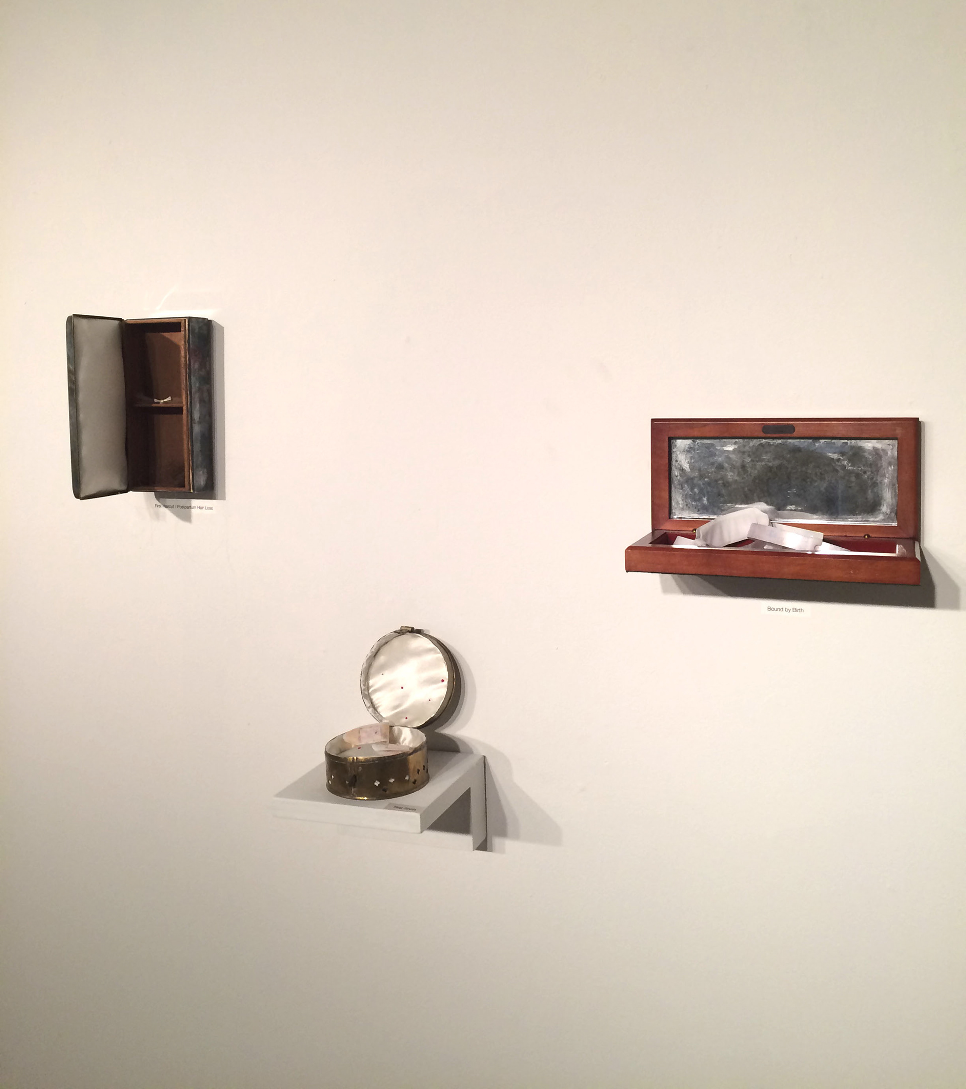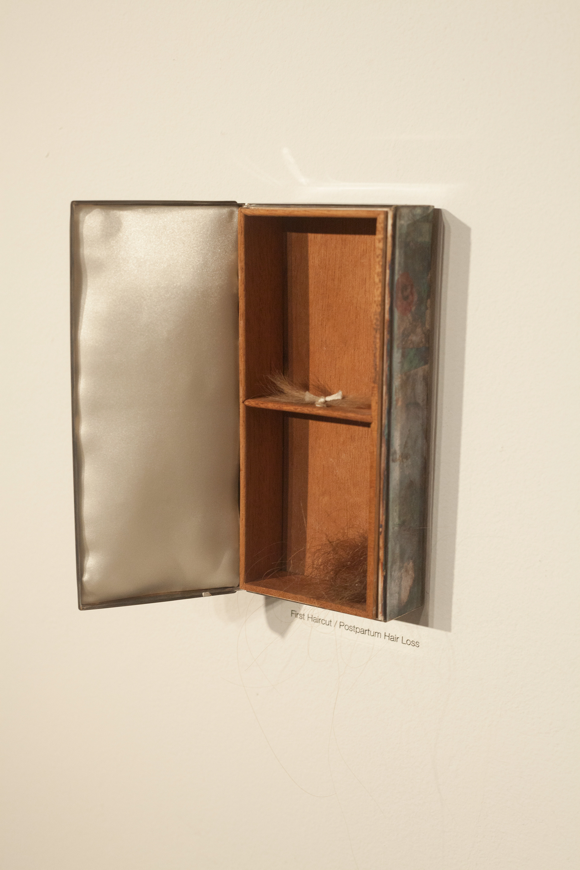 My MFA thesis, All Requisite Parts, consists of 362 polaroids mounted on baltic birch wood (August 2015-March 2016), 12 sculptural reliquaries, and an audio component. All Requisite Parts began as a way to confront my inner conflict in regards to the female archetype, the idealization of motherhood, and the notion of fulfillment. Through multiple mediums I create an immersive experience that communicates my struggle to balance and manage the roles and expectations as a mother, military spouse, and artist. Additionally, within this body of work, I highlight how family narrative and circumstances such as loss can alter and form one’s identity.