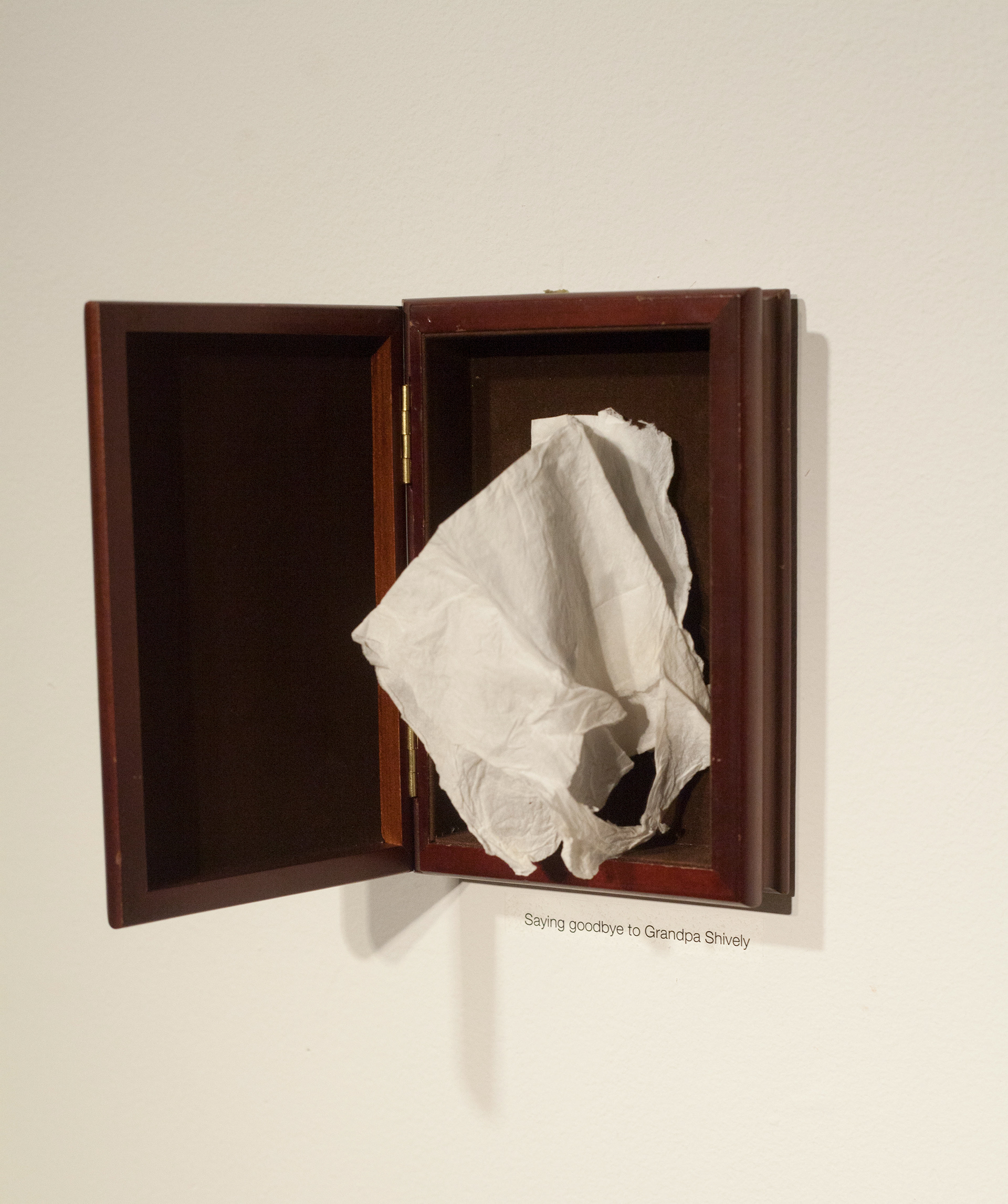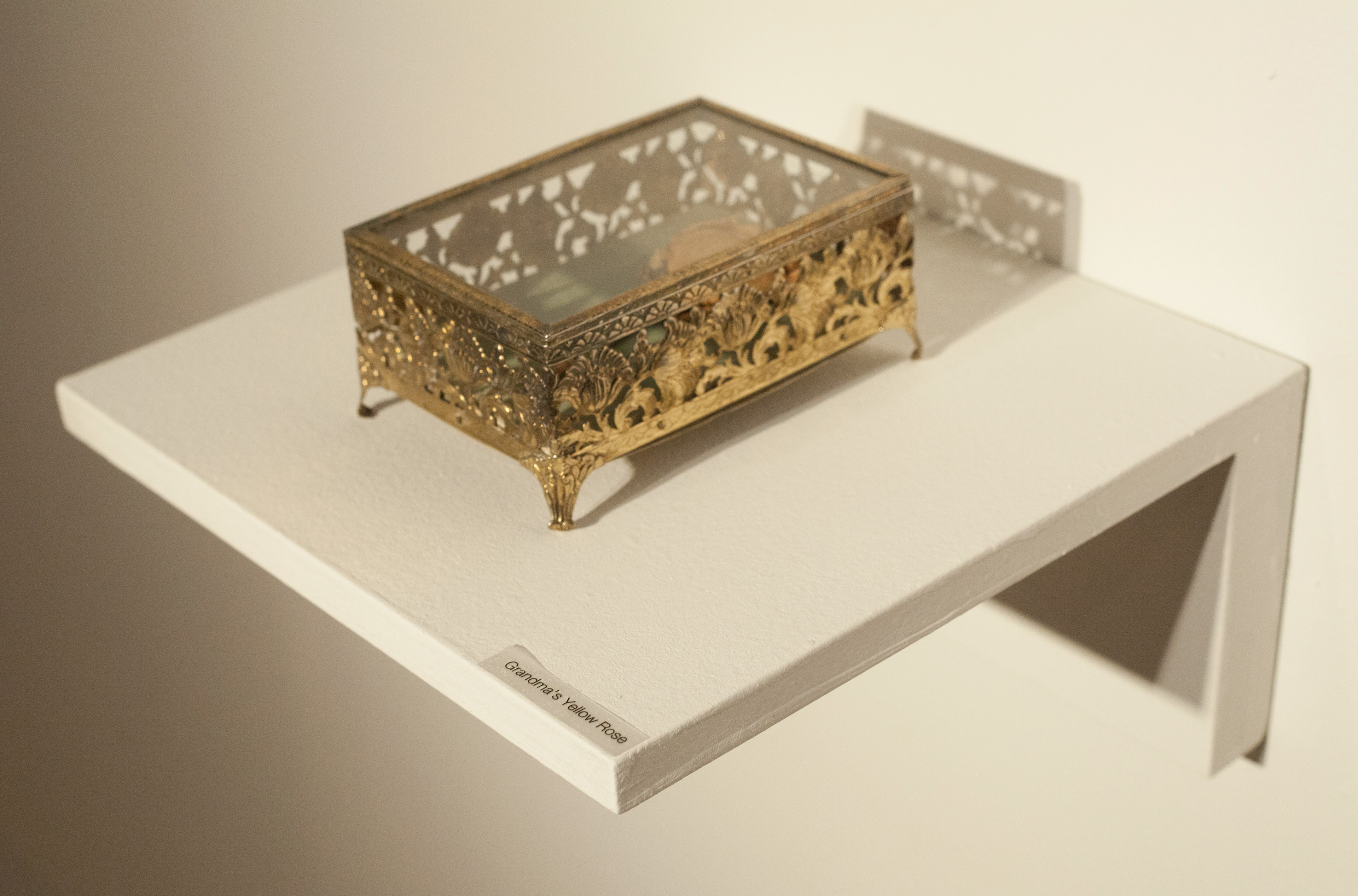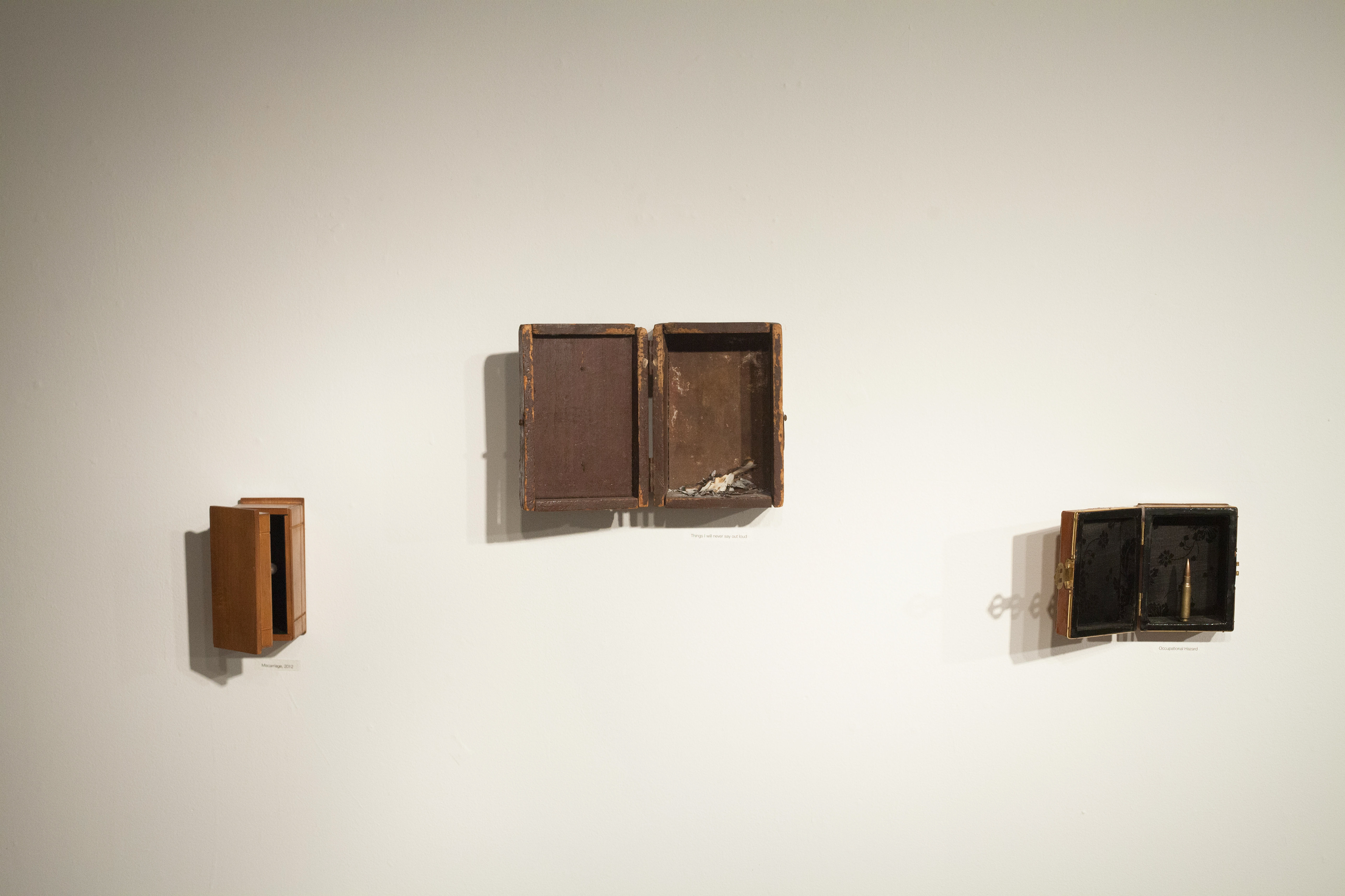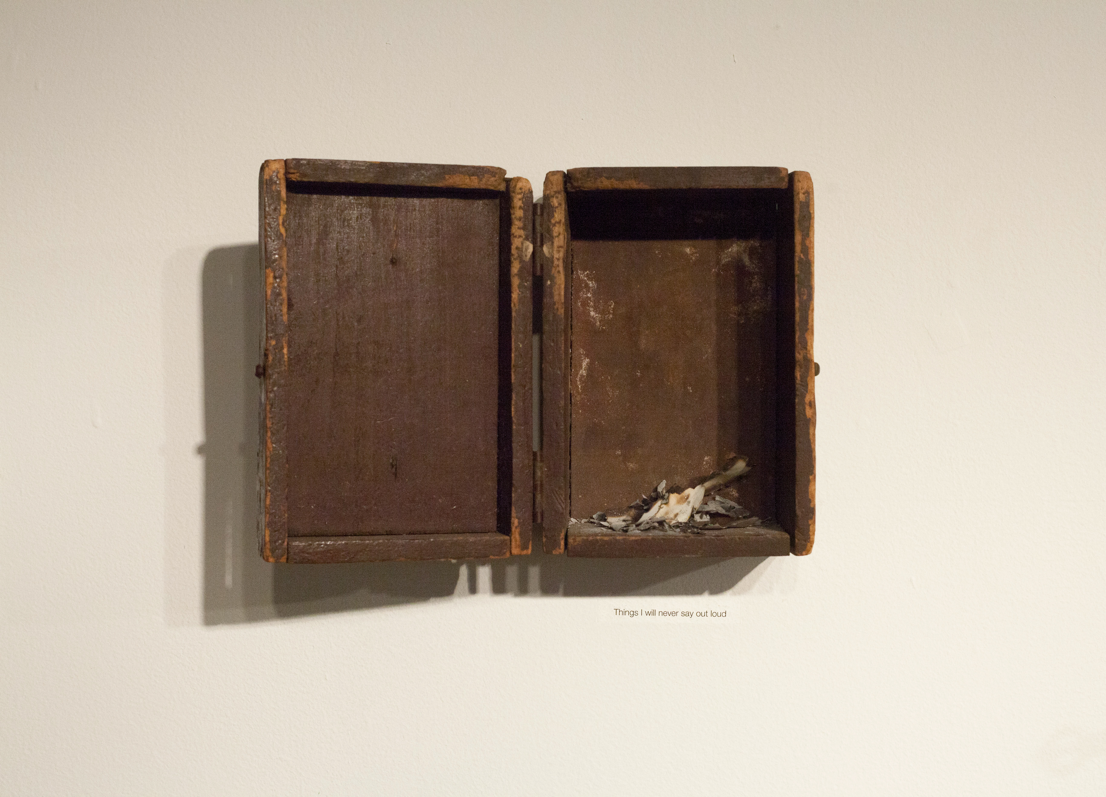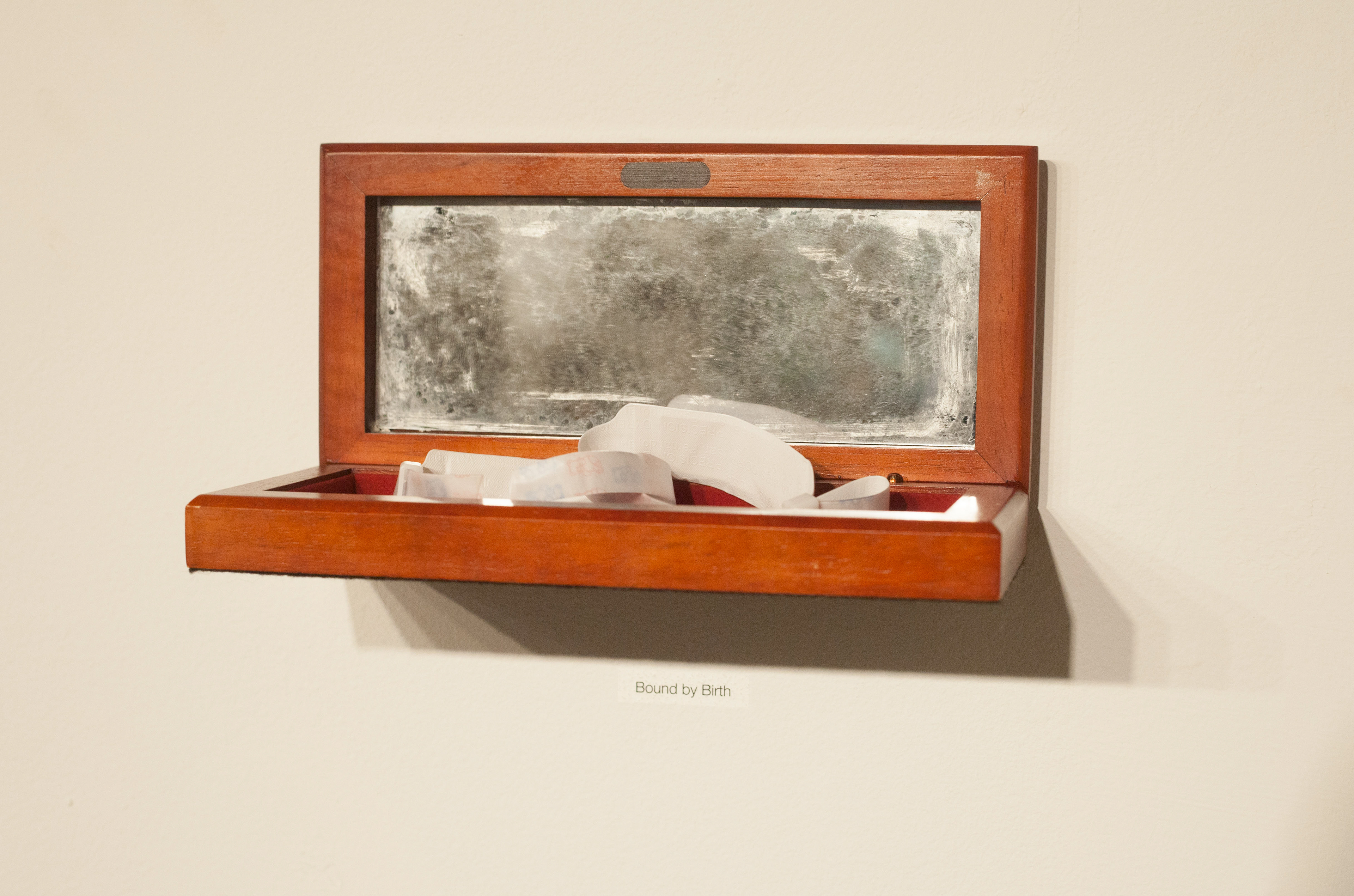 My MFA thesis, All Requisite Parts, consists of 362 polaroids mounted on baltic birch wood (August 2015-March 2016), 12 sculptural reliquaries, and an audio component. All Requisite Parts began as a way to confront my inner conflict in regards to the female archetype, the idealization of motherhood, and the notion of fulfillment. Through multiple mediums I create an immersive experience that communicates my struggle to balance and manage the roles and expectations as a mother, military spouse, and artist. Additionally, within this body of work, I highlight how family narrative and circumstances such as loss can alter and form one’s identity.